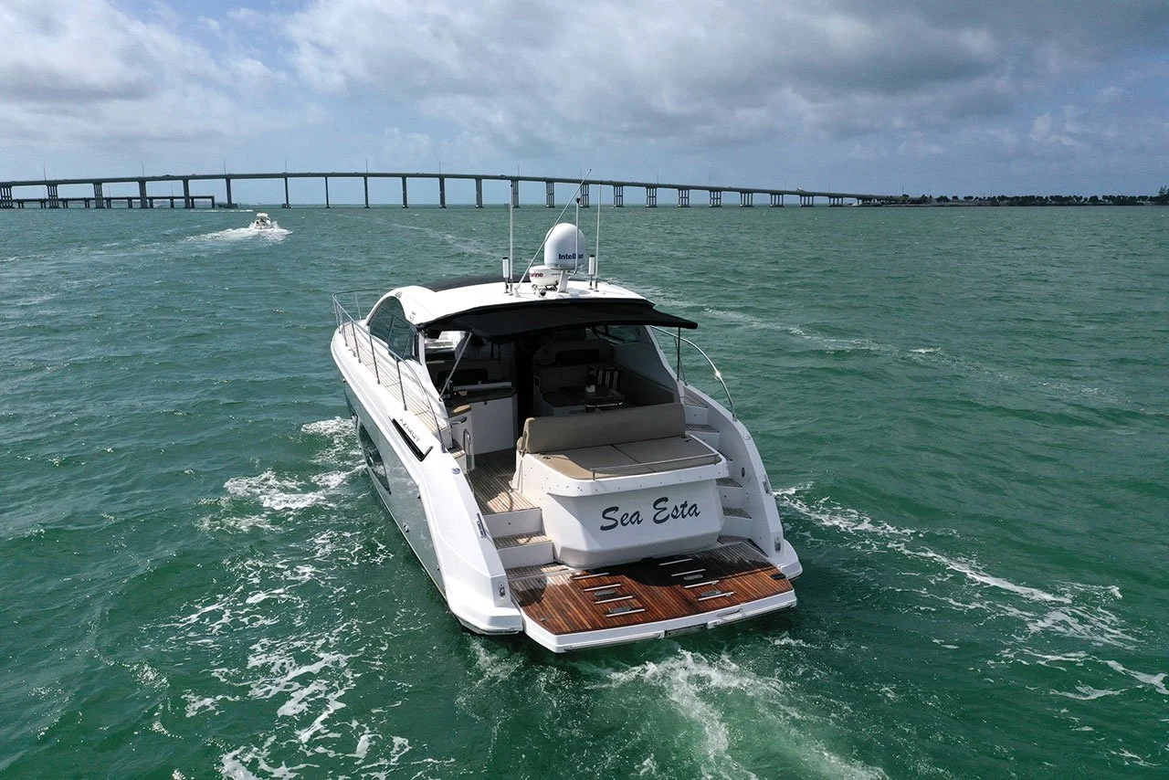 Leave your worries onshore and set sail on our 43-foot Azimut yacht charter in Miami – because let's face it, life is just better when you're cruising like a boss!